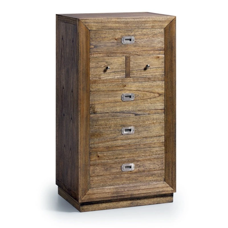 Sinfonier de estilo colonial con 6 cajones. Fabricado en madera de mindi con acabado natural.