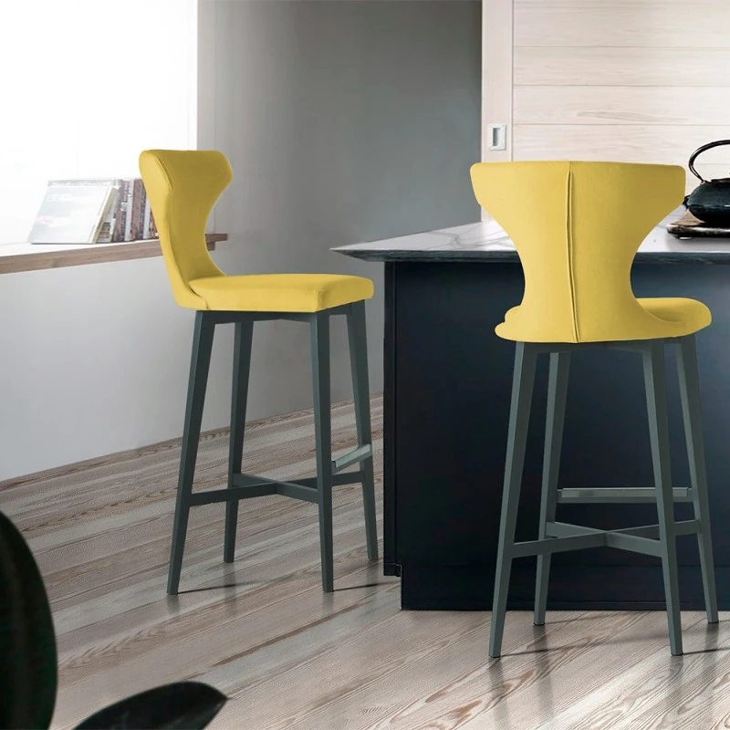 Taburete Sophie. Estructura fabricada en madera de haya. Tapizado en tela Tucan de fácil limpieza.