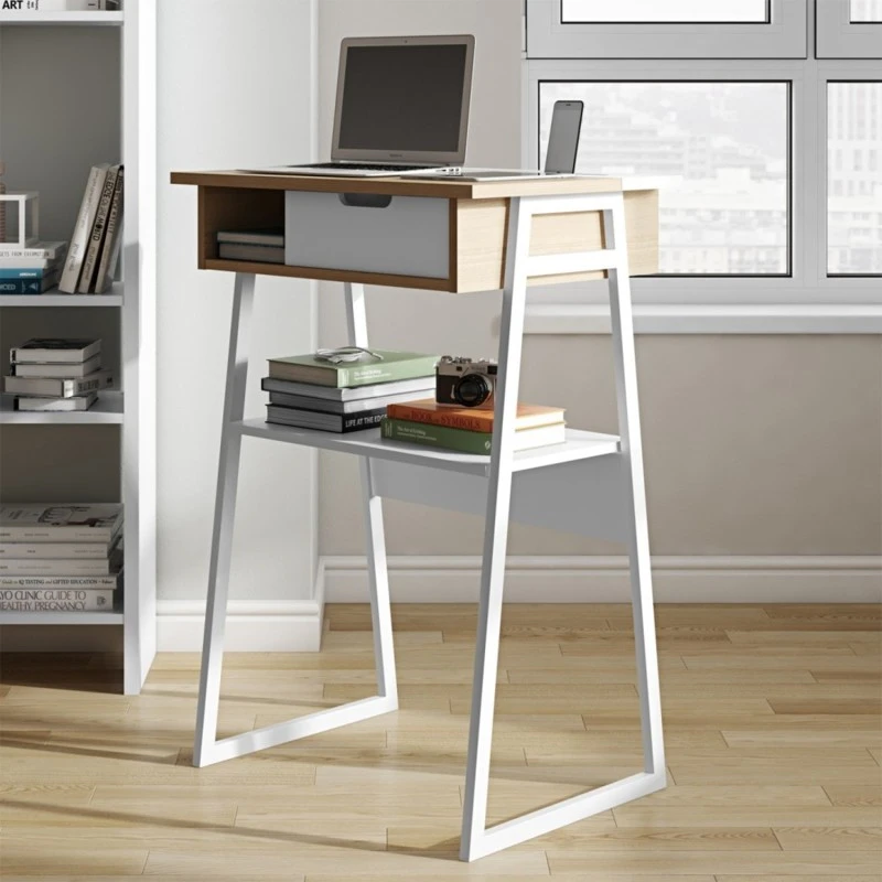 Este escritorio ergonico y funcional es una versión moderna de un escritorio tradicional. Ideal para trabajar de pie.