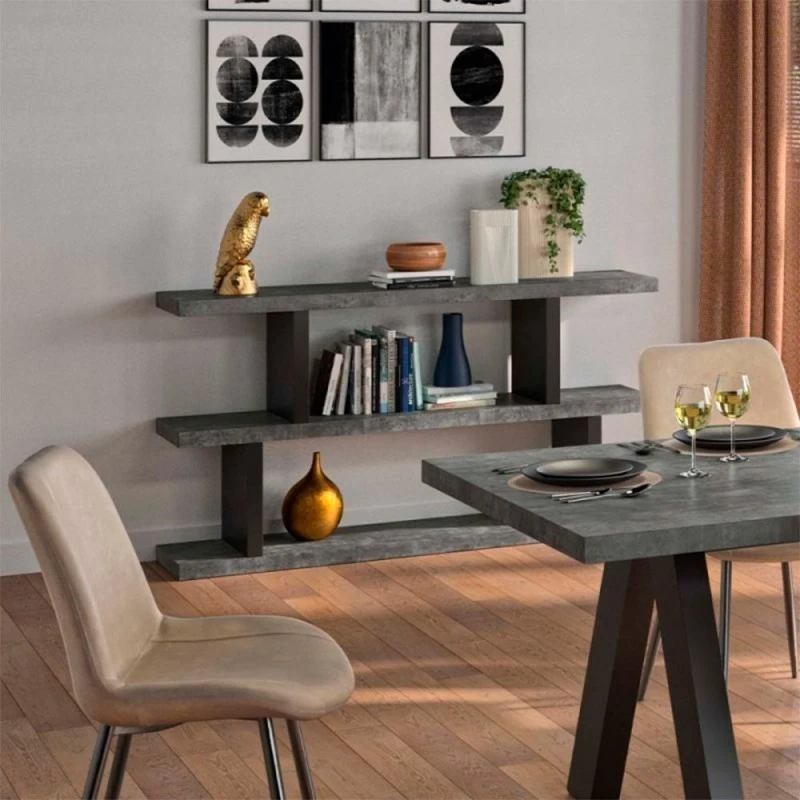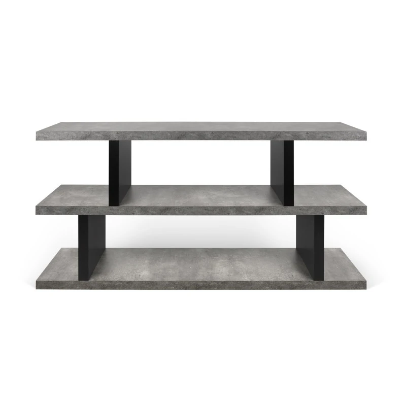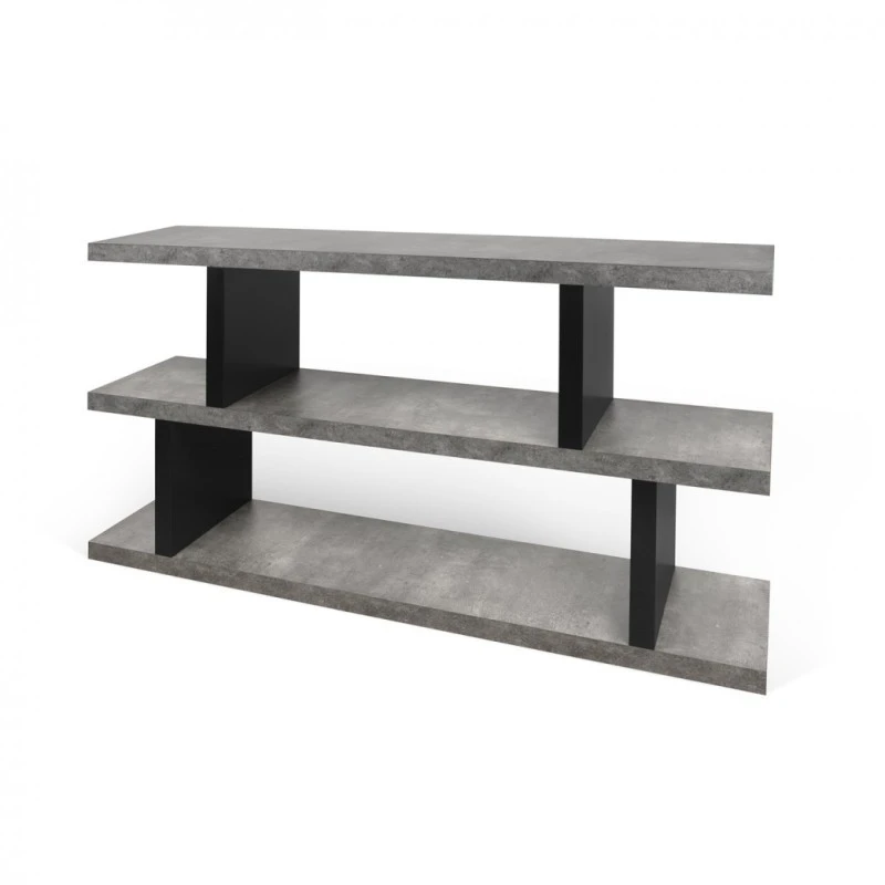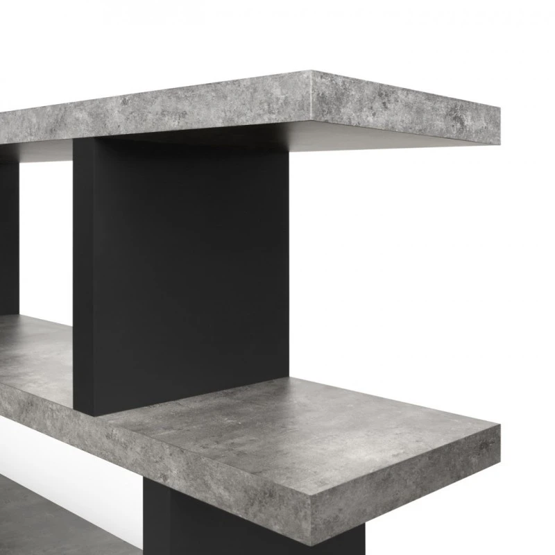 Estanteria moderna Step baja, fabricada en Dm y melamina color cemento/negro puro.