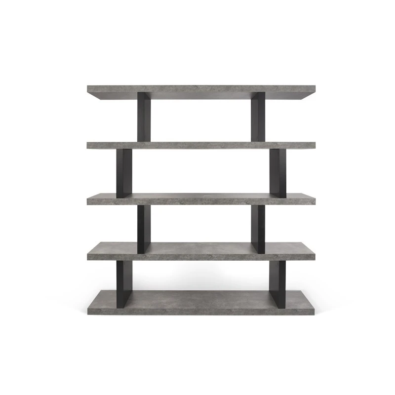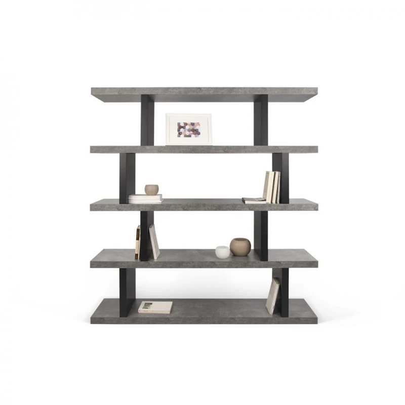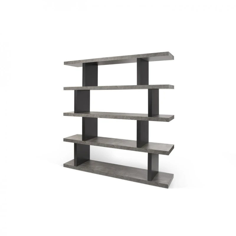 Estanteria moderna Step alta, fabricada en Dm y melamina color cemento/negro puro.