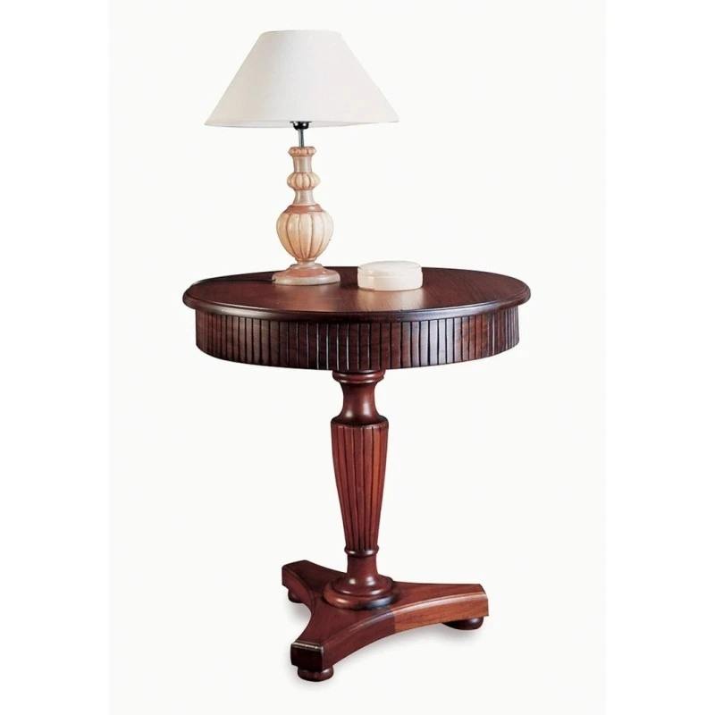 Velador clásico con incisiones verticales en el frente, fabricado en madera de caoba con acabado a la cera. Tallado artesanalmente.