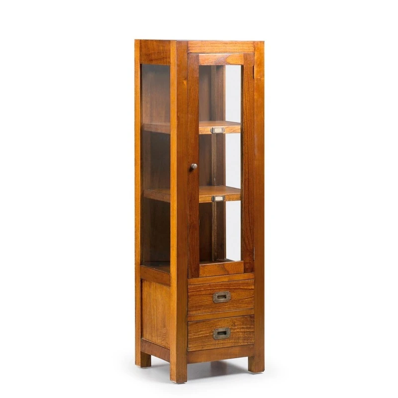 Vitrina de estilo colonial Star con 1 puerta, 2 cajones y 2 estantes. Fabricada en madera de mindi.