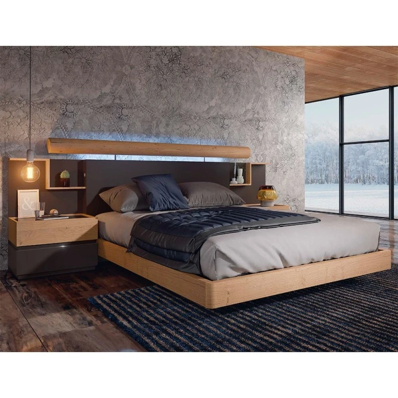 Dormitorio moderno You & Me 08. Formado por Cabezal Kuffert con alas para somier de 150 cm, bañera Aro Class somier 150×190 cm y mesitas de noche TOP con 2 cajones.